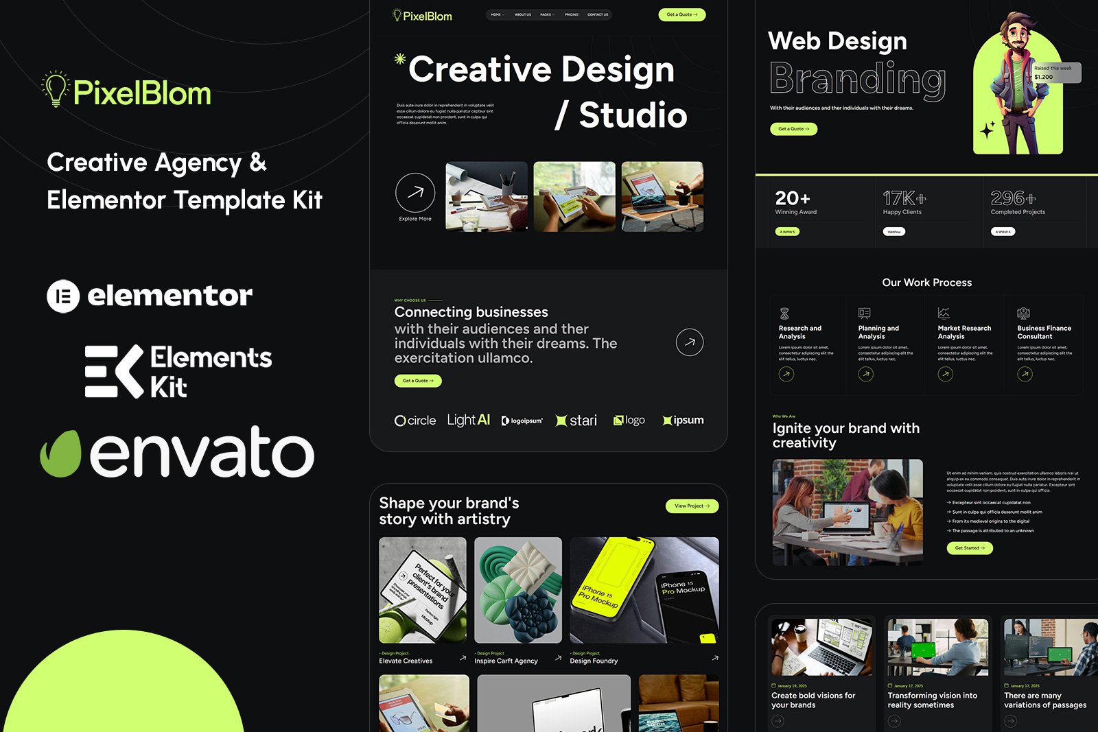 Elementor Full Site Kits are special format kits that include a full site demo for fresh WordPress installations that do not use the Envato Elements plugin.These kits will have “Full Site Kit” in the title and filename and require Elementor Pro.